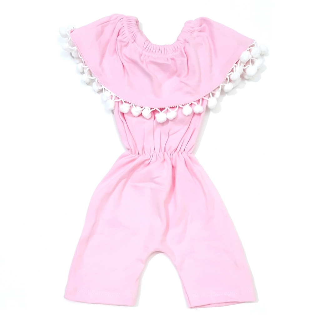 رامپر یقه‌دلبری پوم‌دار صورتی